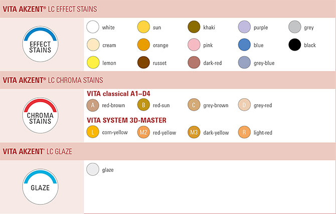 VITA AKZENT LC sind lichthärtende Kompositmalfarben zur Reproduktion individueller Farbeffekte sowie zur Umsetzung von Farbkorrekturen.
