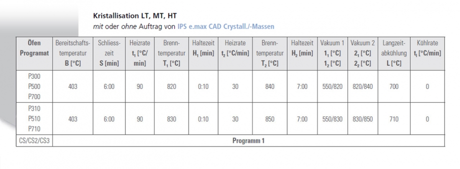 Hinweis: Zugluft auf Brenngut vermeiden, evtl. Langzeitabkühlung anschließen. Vortrocknungszeit um 2 Min. verlängern, wenn VITA AKZENT Plus Paste verwendet wird.
