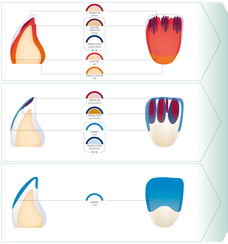 Schichtschemata: Beispiel älterer Frontzahn in A3
