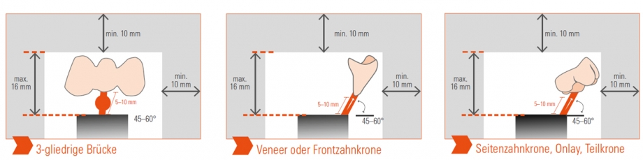 Maximale Länge (Wachsobjekt + Presskanal) von 16 mm nicht überschreiten.