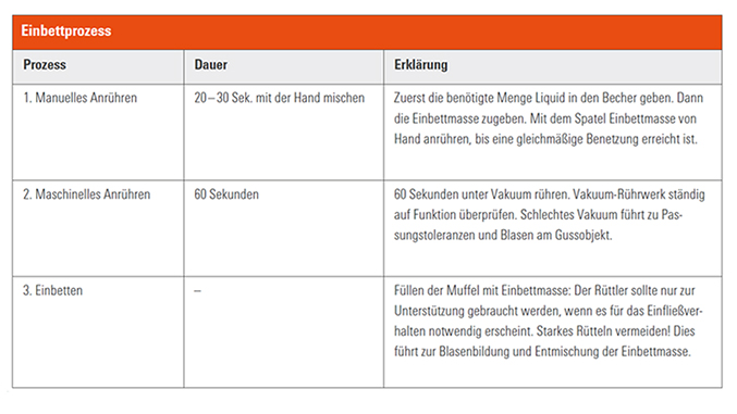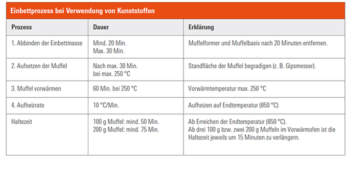 Für die Vorbereitung zum Vorwärmen sind zusätzlich folgende Schritte notwendig: - Störstellen auf der Standfläche der Muffel mit einem Gipsmesser vorsichtig entfernen. - Auf senkrechten Stand (90° Winkel) achten. - Beim Vorwärmen mehrerer Muffeln sind die Muffeln mit den Pelletfarben zu markieren.