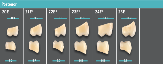 - körperhafte, naturnahe Zahngeometrie für gute Integration in das Restgebiss