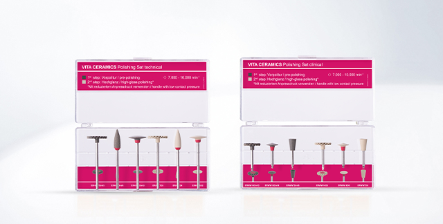 Die VITA CERAMICS Polishing Sets wurden für die zweistufige Politur aller dentalkeramischen Materialien in Praxis und Labor entwickelt. Die Sets beinhalten je insgesamt 6 Polierkörper zur Vor- und Hochglanzpolitur.
