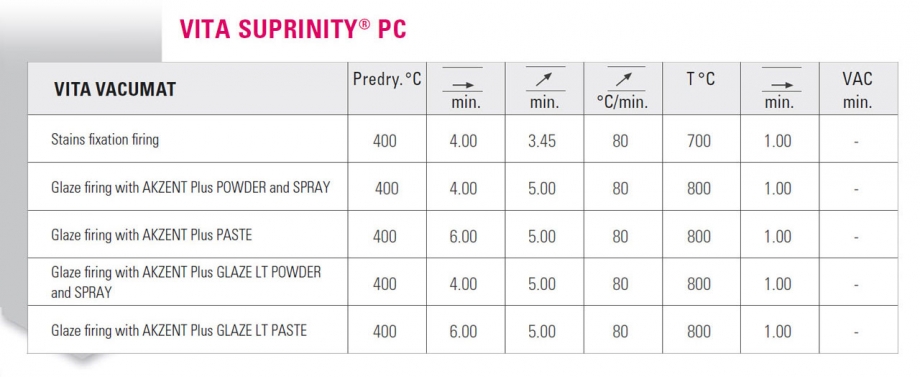 Extend preheating time ( min.) by 2 min when using VITA AKZENT Plus Paste.