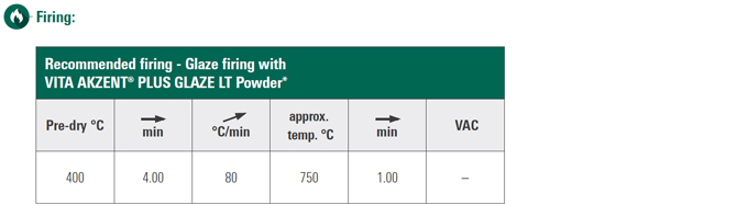 • Glaze the entire restoration with VITA AKZENT PLUS GLAZE LT as needed.