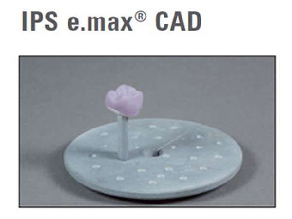 Rellenar la corona con IPS Object Fix Putty o Flow, utilizar el IPS e.max CAD Crystallization Pin más grande posible, alisar con una espátula de plástico el material IPS Object Fix tras la colocación sobre el perno y eliminar las posibles impurezas empleando un pincel humedecido con agua, y a continuación depositar la corona sobre la IPS e.max CAD Crystallization Tray.