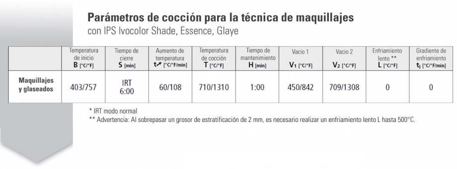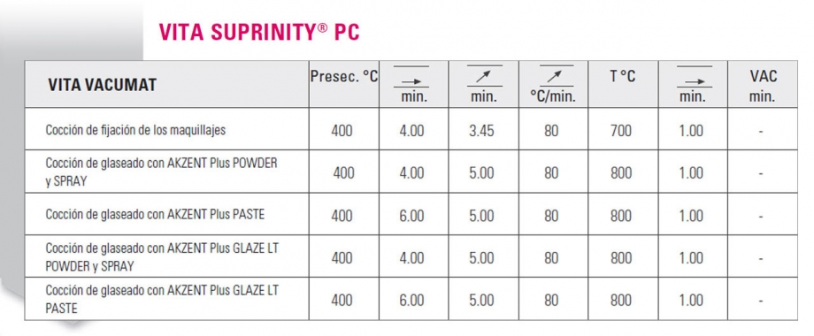 Nota: evitar que las piezas de cocción queden expuestas a corrientes de aire, activar el enfriamiento lento si fuera preciso. Si se utiliza VITA AKZENT Plus Paste debe prolongarse por 2 min. el tiempo de presecado ( min).