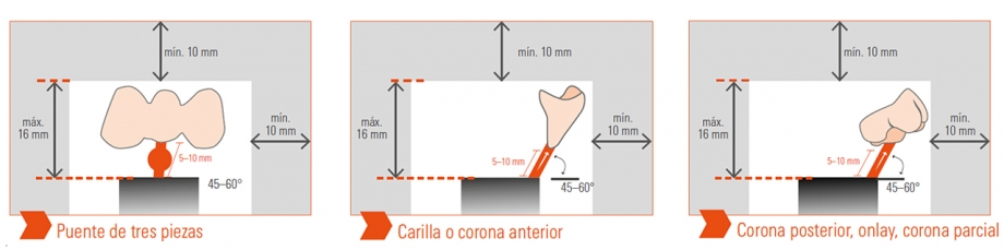 No exceder la longitud máxima (objeto de cera + jito de prensado) de 16 mm.