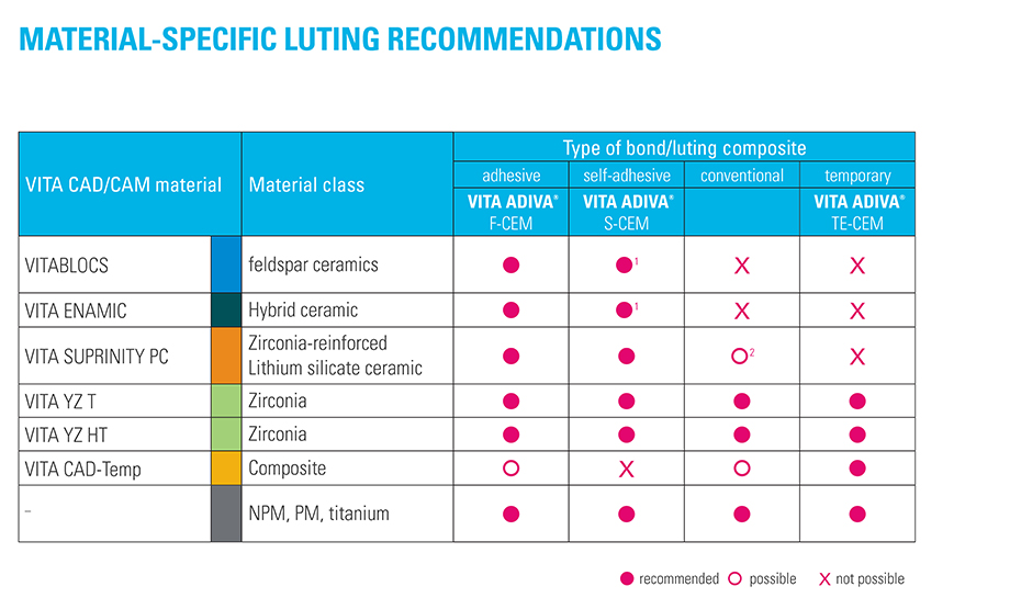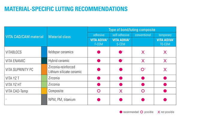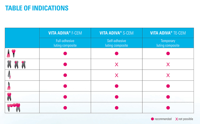 VITA ADIVA TE-CEM es un cemento de resina de polimerización dual para la fijación provisional.