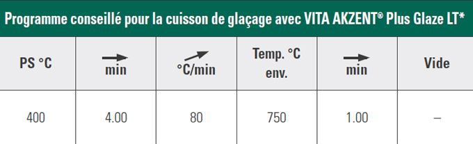 • Si nécessaire, glacer toute la restauration avec VITA AKZENT PLUS GLAZE.