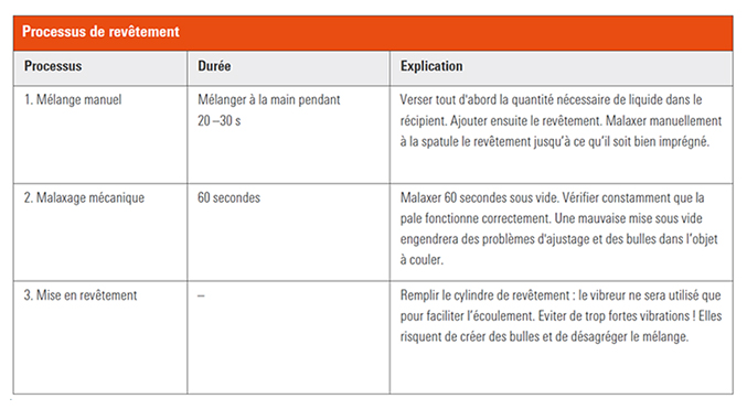 Voir également d'autres tableaux dans la mode d'emploi, chapitre 4.3.1 Processus de revêtement.