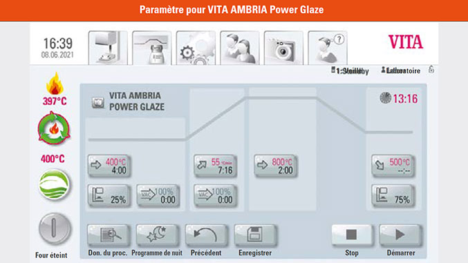 - Une cuisson Power Glaze est effectuée après dégrossissage et ajustage de la restauration. Recommandé pour les constructions de bridges.
