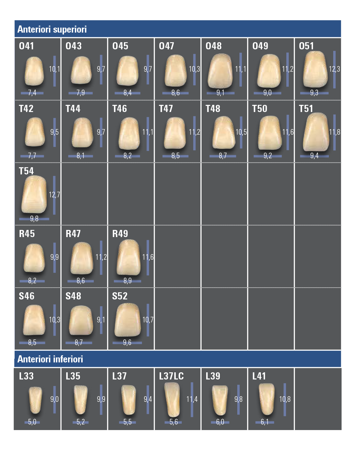 - buona riproduzione cromatica in presenza di dentatura residua grazie all'eccellente corrispondenza con la scala colori